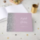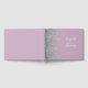 This elegant wedding guest book features a left-hand border of faux silver glitter on a dusty lilac background. Easily customise the white text with the names of the bride and groom in whimsical handwriting calligraphy over a large ampersand. Add additional text of your choice to the front and spine.
