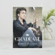 Celebrate graduation with our trendy graduation announcement cards. Perfectly encapsulating the spirit of achievement, the card features a striking photo of the graduate, elegantly overlaid with a dusty black hue. Accents of a classic white mortarboard add an authentic touch while the modern text template allows you to add a personal touch. Reflect your graduate's unique journey with this stylish, one-of-a-kind announcement card.
