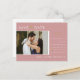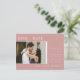 This save the date engagement announcement invitation postcard features elegant calligraphy and simple sans serif typography font with a photo and QR code on a dusty pink background with faux gold lines, gold heart ring, and black/white text for a clean minimalist and modern look, which is a beautiful way to tell your guests to inform about your upcoming wedding. Announce to your family and friends you are getting married with this invitation and add a personal touch with beautiful pictures of you and your soon-to-be better half. The simplicity of this design adds a touch of elegance to your wedding save the date invitation cards. It works well with many wedding themes and definitely a great addition to your wedding. Just customise the names and wording in a few easy steps and personalise the invitation postcard with your photo of the happy couple and replace the QR Code with yours.