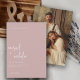 Design features a simple yet sophisticated white lettering script against a dusty rose green background that sets the tone and pairs well with any modern wedding theme venue. Easily customise with your important details as well as your awesome photo of choice.