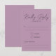 Streamline your wedding guest responses with this chic and minimalist RSVP card. This response card features a romantic handwritten "Kindly Reply" header set against a soft mauve purple background.