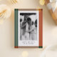A vertical, one-photo, nontraditional Christmas card featuring the plaid frame in earthy colours with gold foil lines on top. On the back is room to enter your own message. You can also change the colours of the background or add another photo.