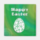 An abstract retro Easter illustration featuring a paper-art white Easter egg on a colorful green swirled background.