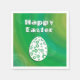 An abstract retro Easter illustration featuring a paper-art white Easter egg on a colourful green swirled background.