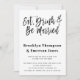 This modern wedding invitation has the words eat, drink and be married! in a hand-lettered font. On the back, you can upload a QR code to direct your guests to your wedding website for all the information and to RSVP.