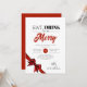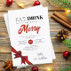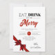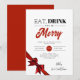 Modern Eat, Drink Be Merry Xmas Red Ribbon Invitation