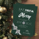Modern Eat Drink Be Merry Xmas Silver Ribbon Green Invitation