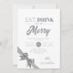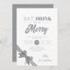 Modern Eat, Drink Be Merry Xmas Silver Ribbon Invitation