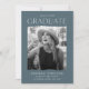Invite guests to celebrate your graduate's exciting milestone with these modern photo graduation party invites! The design features the graduation year at the top with "Graduate" shown below in white modern lettering. The graduate's photo is displayed inside of a smokey blue frame with torn edges. Personalize the design by adding the graduate's name, school name, and future plans (college, military, career choice, etc.). The invite reverses to display your graduation party details.