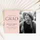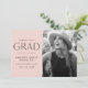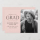Celebrate your graduate's exciting milestone with these unique photo graduation announcements! The design features "congrats to our grad" in black modern lettering with a blush pink background with a torn edge bordering the graduate's senior photo. Personalise the announcement by adding the graduate's name, school name, and graduation year. The card reverses to display a solid blush pink background.