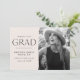 Celebrate your graduate's exciting milestone with these unique photo graduation announcements! The design features "congrats to our grad" in black modern lettering with a cream-coloured background with a torn edge bordering the graduate's senior photo. Personalise the announcement by adding the graduate's name, school name, and graduation year. The card reverses to display a solid cream background.