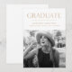 Celebrate your graduate’s exciting achievement with this modern photo graduation announcement featuring the word “Graduate” in bold gold typography. A realistic white torn-edge border highlights your graduate’s senior photo, adding a stylish and contemporary touch. Personalize with their name, school, and graduation year to share the news with friends and family in a meaningful way. Perfect for high school or college graduations, this announcement offers a clean and elegant way to honor this important milestone.