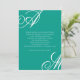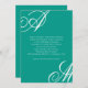 A chic modern design with an edge, this wedding invitation features bold monograms of the bride and groom on alternate corners. Replace the sample text with your information. You may move your initials slightly left or right to accommodate their best display in this design format. The monograms look best when they run slightly off the edges. Change any wording on the invitation to suit your personal style and preferences.