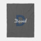 Modern Editable Dark Grey & Blue Name & Monogram Fleece Blanket