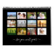 Create your own calendar with your very own photos for yourself, family, or friends. One photo per month. For the cover, update the text placeholders with your family name in white script and the calendar year in white. At the back, a collage of the year on a black background.  For the photos, replace the 12 photos by uploading 12 of your own! At the end of the year, separate out each page and frame the photos, or simply keep it as a photo album.