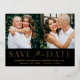 Announce your wedding date with this stylish, modern photo save the date postcard. The design features two of your favourite engagement photos with "Save the Date" displayed below in gold foil lettering and black background. Personalise the front of the foil save the date card by adding your names, date, and wedding location. The save the date postcard reverses to display your return address and wedding details. The simple photo save the date announcement is perfect for any wedding theme.