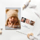 Announce your new baby boy to family and friends in style with this simple and sleek photo birth announcement. Features a modern text overlay on the front featured photo, and three square photos on the back of the card with text that can be personalised. Use the "customise it" feature to edit the text colours and white background colour on the back side of the card.
