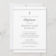 The classic elegant baptism invitation is a modern, clean invite featuring pastel grey stripes and a minimal cross with editable grey text.