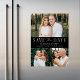 Announce your wedding date with this stylish, modern photo save the date magnet. The design features three of your favourite engagement photos with "Save the Date" displayed in white serif and script fonts against a black background. Personalise the minimalist save the date magnet by adding your names, date, and wedding location. The simple save the date photo magnet is perfect for any wedding theme.