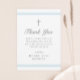 The simple stripe baptism thank you card is modern and clean featuring soft blue stripes and a cross. Grey customisable type allows you to change all of the information on the card to your liking. Perfect for a little boy's baptism.