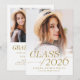 Minimalist class of 2026 4 photo graduation announcement and invitation feature gold modern elegance serif font and photos in front and back, simple and graceful. Custom it with your own photos and grad party information.