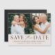 Announce your wedding date with this stylish, modern photo save the date magnet. The design features two of your favourite engagement photos with "Save the Date" displayed below in black serif and script fonts against a cream background. Personalise the save the date photo magnets by adding your names, date, and wedding location. The simple save the date magnets are perfect for any wedding theme.