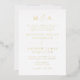 Minimalist, modern wedding invitation featuring your monogram initials and wedding details displayed in gold foil lettering with calligraphy script accents. The white background can be changed to a colour of your choice. Designed to coordinate with our Modern Elegance wedding collection.