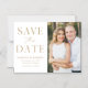 Announce your wedding date with this stylish, modern photo save the date magnet. The design features "Save the Date" in gold serif and script fonts with a white background. Personalise the minimalist save the date magnet by adding your names, date, wedding location, and photo. The simple save the date magnet is perfect for any wedding theme.