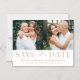 Announce your wedding date with this stylish, modern photo save the date magnet. The design features two of your favourite engagement photos with "Save the Date" displayed below in gold serif and script fonts against a white background. Personalise the save the date photo magnets by adding your names, date, and wedding location. The simple save the date magnets are perfect for any wedding theme.
