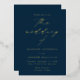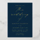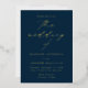 Minimalist, modern wedding invitation featuring your wedding details with "the wedding of" in an elegant gold foil calligraphy script. The navy background can be changed to a colour of your choice. Designed to coordinate with our Modern Elegance wedding collection.
