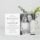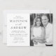 Modern photo wedding invitation featuring your wedding details on the left of the design in black lettering with calligraphy script accents. Personalise the front of the invite by adding your names, wedding details, and vertical engagement photo. The back of the invite provides space for additional text and photos. Designed to coordinate with our Modern Elegance wedding collection.
