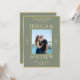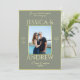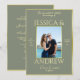 Beautiful, double sided, modern, trendy elegant photo wedding invitation. With a pretty sage colored background with a shiny gold border...sophisticated and fashionable colors suitable for any season. Unique wedding design in romantic sage and gold colors. Simply change the example photo for your own to create your personal unique invitation for your special day. All text, font and font color is fully customizable to meet your requirements. QR-CODE can be applied for additional information. If you would like help to personalize/customize your product, please contact me through my store and i will be very happy to help you. Beautiful chic, classy and stylish wedding design.