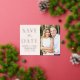 Announce your wedding date with this stylish foil save the date postcard. The design features "Save the Date" in rose gold foil lettering with a cream-coloured background. Personalise the modern save the date postcard by adding your names, date, wedding location, and engagement photo. The foil save the date postcard reverses to display your return address and wedding details. The photo save the date card is perfect for any wedding theme.