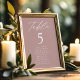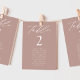 Elegant wedding seating chart featuring "table" displayed in white calligraphy script with the table number and guest names shown below on a dusty rose background. The design repeats on the back. To order the table number seating chart, edit each card with the table number and guest names and add it to your cart. Designed to coordinate with our Modern Elegance wedding collection.