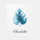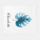 Modern fleece blanket design featuring originally hand-painted watercolor monstera leaf. Text is customisable.