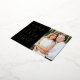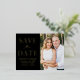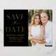 Announce your wedding date with this stylish foil save the date postcard. The design features "Save the Date" in gold foil lettering with a black background. Personalise the modern save the date postcard by adding your names, date, wedding location, and engagement photo. The foil save the date postcard reverses to display your return address and wedding details. The photo save the date card is perfect for any wedding theme.