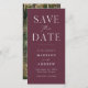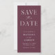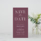 Announce your wedding date with this stylish, modern photo save the date card. The design features "Save the Date" on the front in white serif and script fonts with a wine/purple background. Personalise the minimalist save the date announcement by adding your names, date, and wedding location. The card reverses to display your favourite engagement photo. The simple save the date announcement is perfect for any wedding theme.