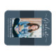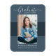 Beautiful 1 photo graduation announcement magnet. Featuring modern text with elegant calligraphy script in white on shades of dusty blue. To see more items like this, visit my store here at "www.Zazzle.com/LakeViewCardCo". Thanks