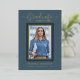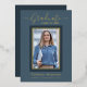 Beautifully elegant 1 photo graduation announcement cards. Featuring modern text with calligraphy script in your choice of gold, silver or rose foil. Your photo is also thinly edged in a double foil trim. The design is complimented with a background in shades dusty blue. The back of the card offers a personalised announcement text space for that special graduate. To see more items like this, visit my store here at "www.Zazzle.com/LakeViewCardCo". Thanks