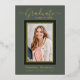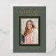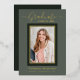 Beautifully elegant 1 photo graduation announcement cards. Featuring modern text with calligraphy script in your choice of gold, silver or rose foil. Your photo is also thinly edged in a double foil trim. The design is complimented with a background in shades sage green. The back of the card offers a personalised announcement text space for that special graduate. To see more items like this, visit my store here at "www.Zazzle.com/LakeViewCardCo". Thanks