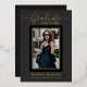 Beautifully elegant 1 photo graduation announcement cards. Featuring modern text with calligraphy script in your choice of gold, silver or rose foil. Your photo is also thinly edged in a double foil trim. The design is complimented with a background in regal shades of dark platinum, grey and black. The back of the card offers a personalised announcement text space for that special graduate. To see more items like this, visit my store here at "www.Zazzle.com/LakeViewCardCo". Thanks