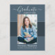 Beautiful 1 photo graduation announcement postcards. Featuring modern text with elegant calligraphy script on shades of dusty blue. To see more items like this, visit my store here at "www.Zazzle.com/LakeViewCardCo". Thanks