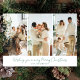 Celebrate the holiday season and spread cheer with this simple and modern three photo holiday card with green script. The elegant and classy design is clean and simple, allowing your family photos to shine.