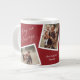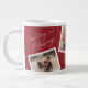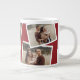 Modern Elegant 4 Photo Collage Family Gift Giant Coffee Mug. Click the edit button to customise this design with your own photos and text. The red background colour can be changed.