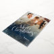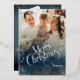 Foil Gold, silver and blue modern Christmas 4 photo holiday card. With an elegant script text and real foil expensive look at an affordable cheap cost. Classy modern traditional design, with a photo overlay effect in the front. Completely custom! The back features your precious family photos placed with precision and a personalized message of Season greetings your loved ones. Congratulations you found the perfect family Christmas Card! Make this your own today!