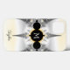 This beautiful iPhone case features abstract fractal art in silver and black gradient with gold accents. Personalise it with your name in black handwriting placed at the bottom and a light grey monogram placed at the centre of the case. Great gift for math and fractal lovers for any occasion.