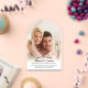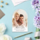 This photo clear acrylic save the date announcement card features a modern arched photo. The design offers curved text and is accented with elegant handwritten script.