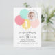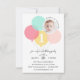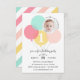 Modern Elegant Balloons First 1st Photo Birthday Invitation - Colourful Pink Blue Yellow Girl Boy