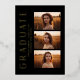 Celebrate your graduation with this Modern Elegant Black 4 Photo Graduation Party Gold Foil Invitation. This chic and trendy invitation features four of your favourite photos in black and gold with a touch of gold foil accents that add a touch of sophistication to the design. The elegant font adds a modern and stylish touch to the overall design. Perfect for high school or college graduation parties, this invitation is customisable and can be printed on a variety of paper types to fit your style and budget.