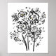 Modern elegant black and white flower poster. Simple abstract illustration of flowers makes a bright floral statement. This affordable and stylish poster helps bring nature to your home décor aesthetic. Flower wall art is a great gift for a flower lover or floral décor enthusiast. Find more fun and trendy things with this design in the Modern Simple Black and White Flower Collection at Beautifully Abstract. (Artwork design © Beautifully Abstract.)